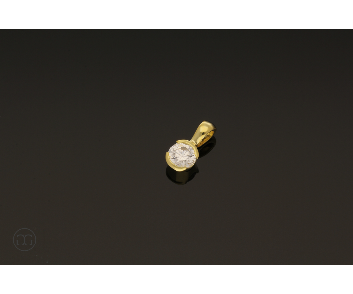 Dieser klassische Diamantanhänger in edlem Gelbgold besetzt mit einem wunderschönen, hochwertigen Brillanten von sehr guter Farbqualität ist ein Sinnbild für zeitlose, schlichte Eleganz.