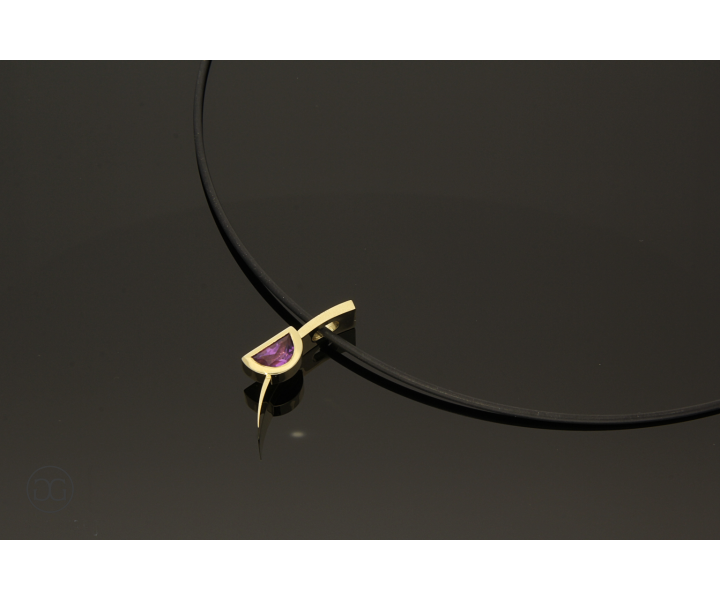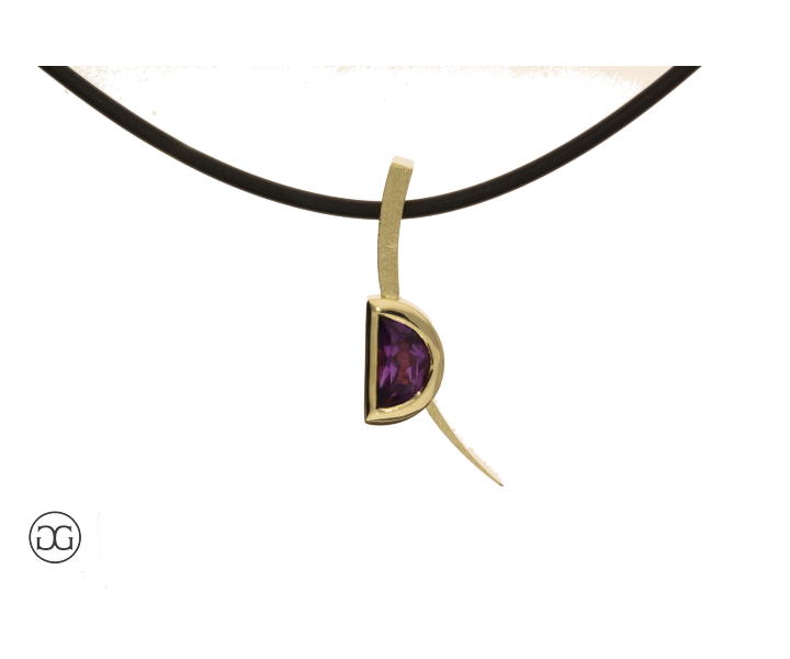 Feinstes Gelbgold besetzt mit einem wunderschönen Amethysten im Fantasieschliff sowie der bewusste Kontrast zwischen polierter und mattierter Oberfläche geben diesem Schmuckstück eine ganz besondere Note.