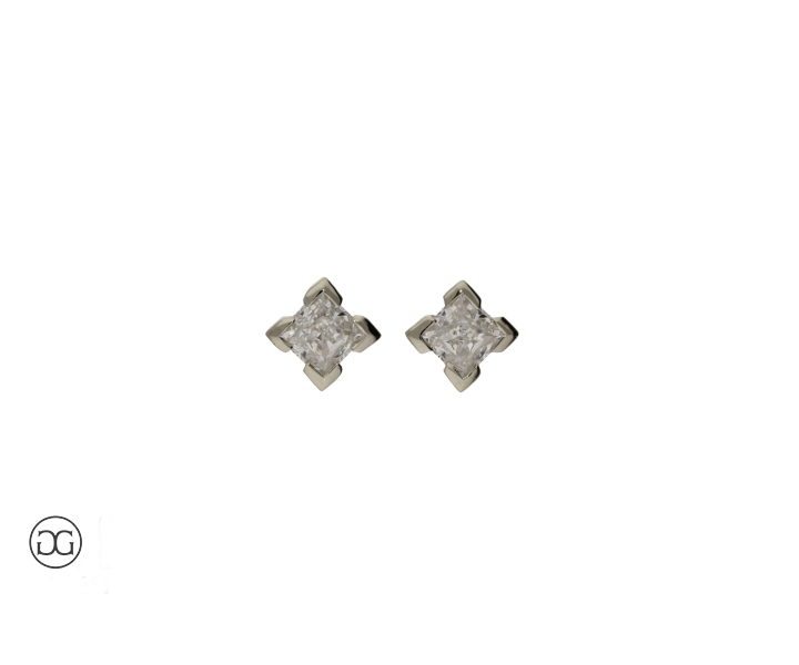 Diese klassischen Diamantohrstecker in edlem Weißgold besetzt mit hochwertigen Diamanten im Princess-Schliff sind ein Sinnbild für zeitlose, schlichte Eleganz.