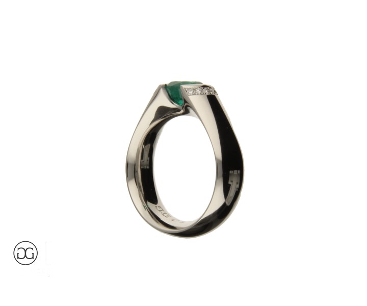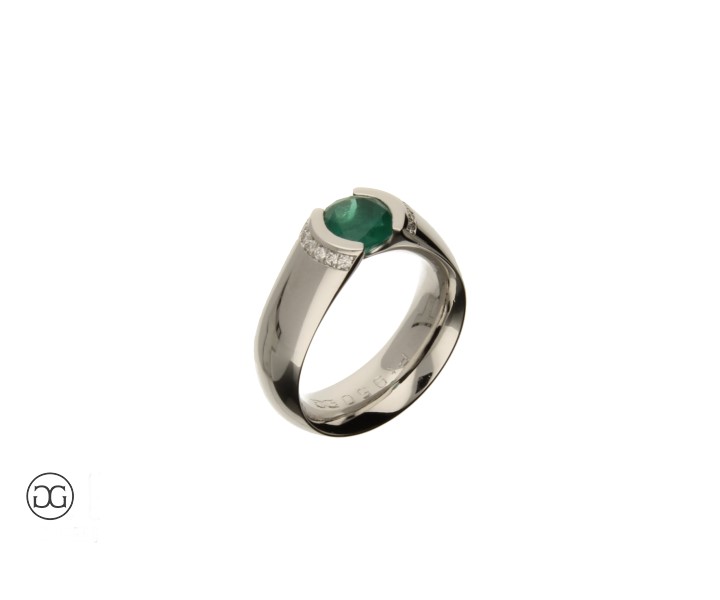 Ein wahrer Schatz in hochwertigster Ausführung: Massiv gefertigter Damenring in Platin 950, der natürliche 1,10ct Smaragd im Rundschliff wird beidseitig von jeweils 6 Brillianten eingefasst, die seine satte grüne Farbe noch zusätzlich unterstreichen. Durch die gewölbte Form des Ringes ist er besonders angenehm zu tragen, das hochlegierte Platin gehört mit zu den beständigsten Materialien.