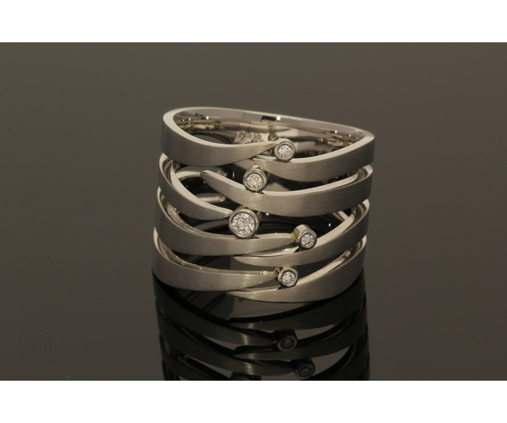 Dieser edle Diamantring besticht durch sein außergewöhnliches, modernes Design und seine brillierende Optik.