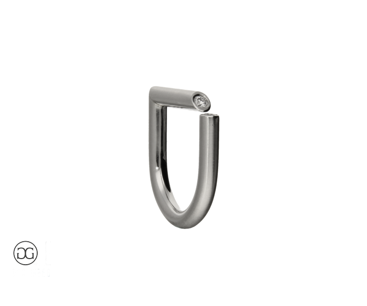 Edles Platin und zwei hochwertig geschliffene Brillanten von sehr guter Farbqualität verleihen dabei diesem unverwechselbaren Schmuckstück eine ganz besondere Note.