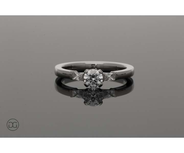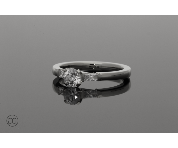 Die klare Linienführung, feinstes Platin in Hochglanzpolitur und hochwertige Diamanten im Brillant- und Baguette-Schliff verleihen diesem Ring einen Hauch von schlichter Eleganz.