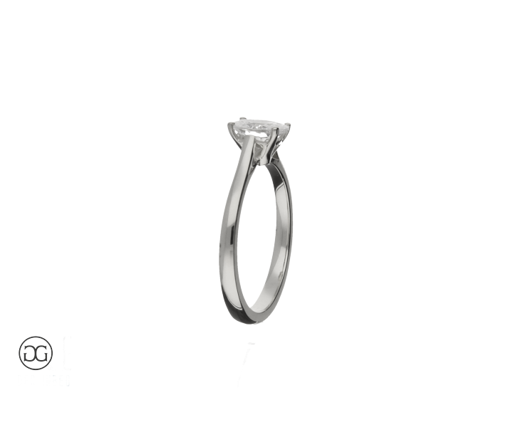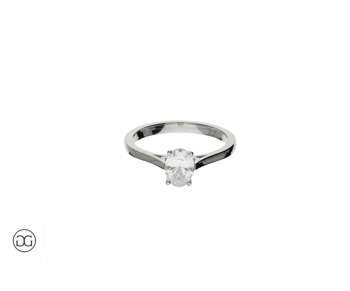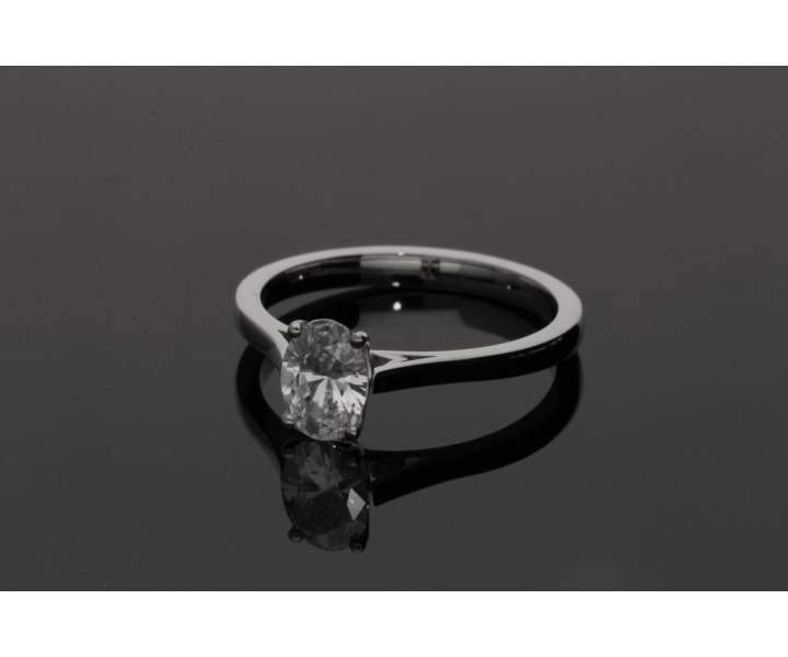 Die klare Linienführung, feinstes Platin in Hochglanzpolitur und ein wunderschöner, hochwertiger Diamant im Ovalschliff verleihen diesem Ring einen Hauch von schlichter Eleganz.