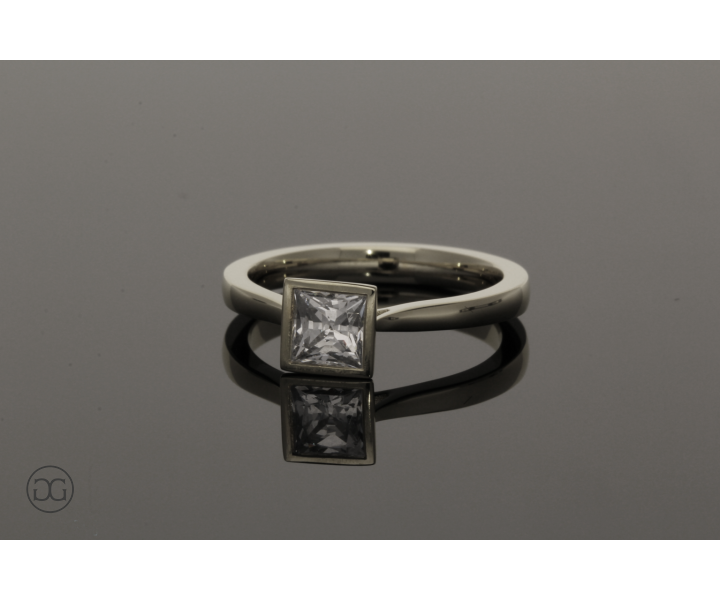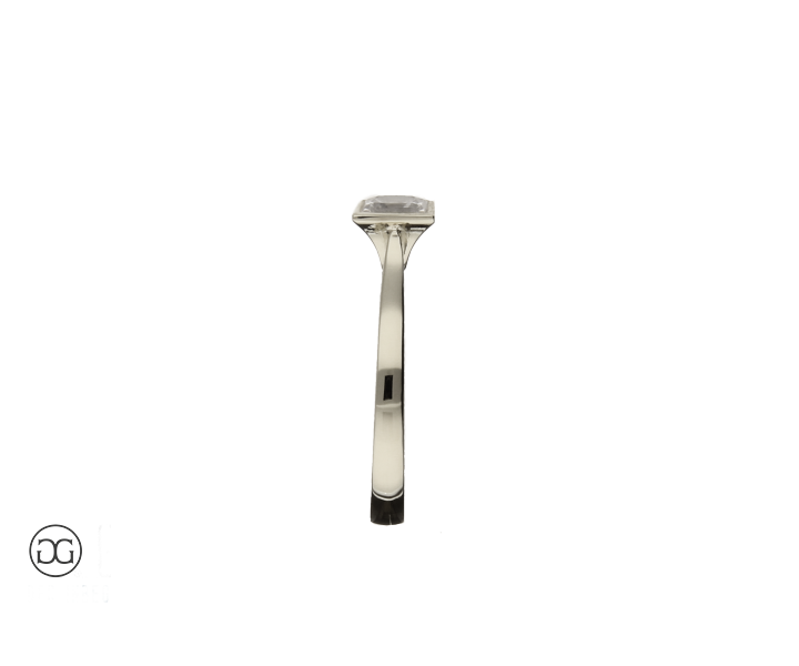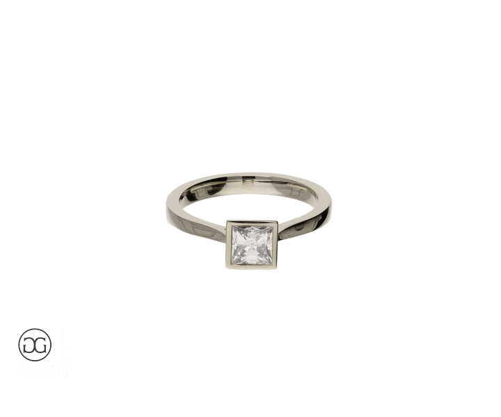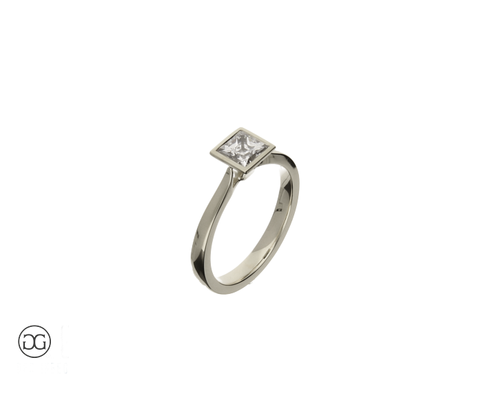 Die klare, feminine Linienführung, feinstes Weißgold in Hochglanzpolitur und ein wunderschöner, hochwertiger Diamant im edlen Princess-Schliff verleihen diesem Ring einen Hauch von schlichter Eleganz.