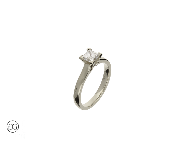 Die klare Linienführung, feinstes Weißgold in Hochglanzpolitur und ein wunderschöner, hochwertiger Diamant im edlen Princess-Schliff verleihen diesem Ring einen Hauch von schlichter Eleganz.