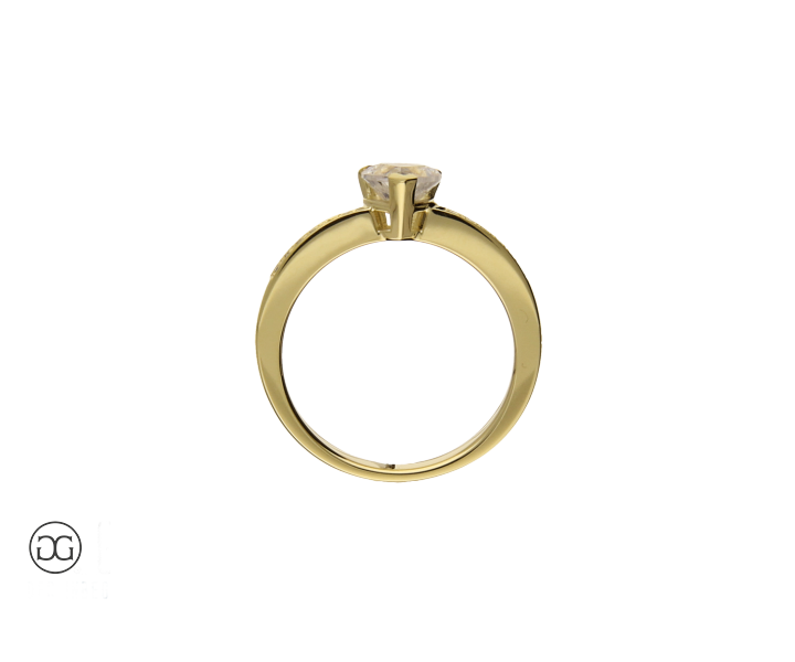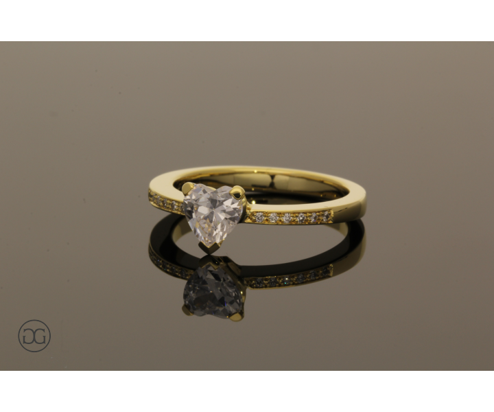 Die klare Linienführung, feinstes Gelbgold in Hochglanzpolitur und wunderschöne, hochwertige Diamanten im Herz- und Brillantschliff verleihen diesem Ring einen Hauch von schlichter Eleganz.