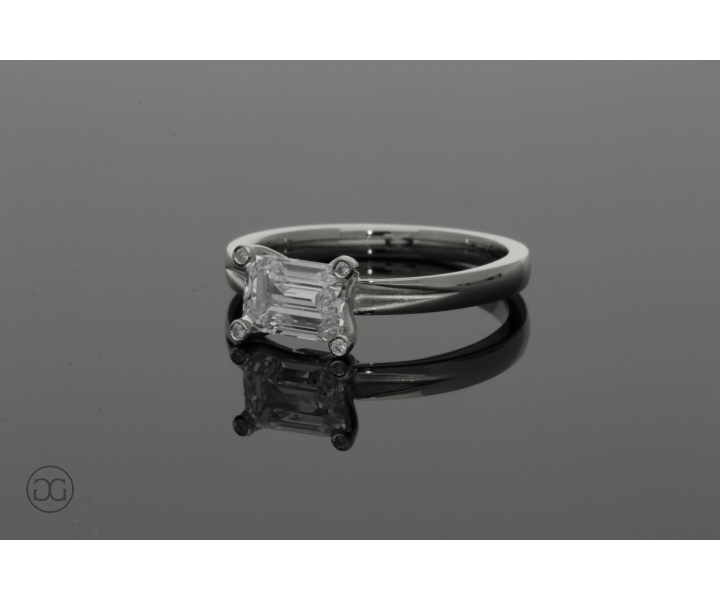 Die klare Linienführung, feinstes Platin in Hochglanzpolitur und wunderschöne, hochwertige Diamanten im Smaragd- und Brillantschliff verleihen diesem Ring einen Hauch von glamuröser Eleganz.