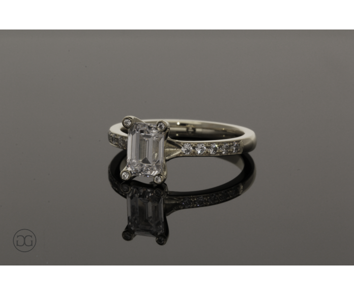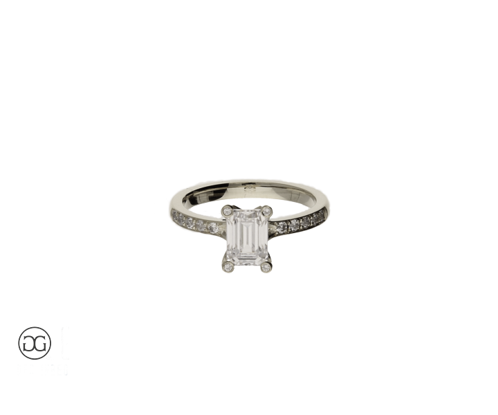 Die klare Linienführung, feinstes Weißgold in Hochglanzpolitur und wunderschöne, hochwertige Diamanten im Smaragd- und Brillantschliff verleihen diesem Ring einen Hauch von glamuröser Eleganz.