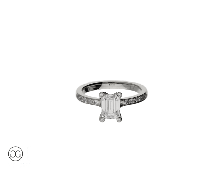 Die klare Linienführung, feinstes Platin in Hochglanzpolitur und wunderschöne, hochwertige Diamanten im Smaragd- und Brillantschliff verleihen diesem Ring einen Hauch von glamuröser Eleganz.
