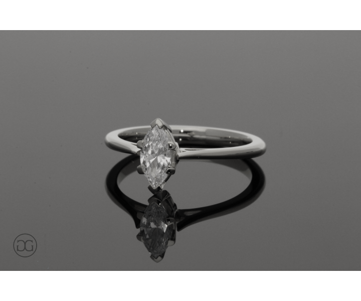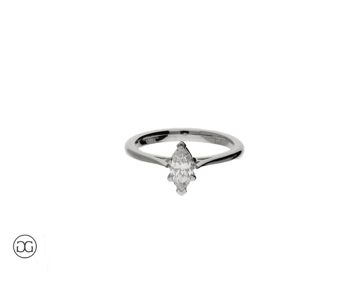 Die klare Linienführung, feinstes Platin in Hochglanzpolitur und ein wunderschöner, hochwertiger Diamant im Navetteschliff verleihen diesem Ring einen Hauch von schlichter Eleganz.