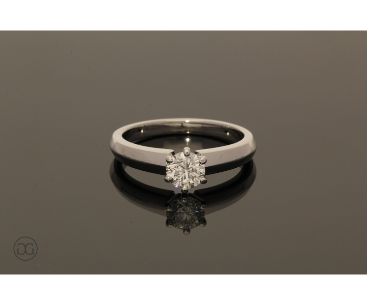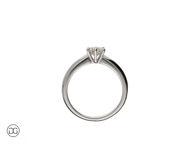 Die klare Linienführung, feinstes Weißgold in Hochglanzpolitur und ein wunderschöner Brillant von außerordentlicher Qualität verleihen diesem Ring einen Hauch von schlichter Eleganz und moderner Weiblichkeit.