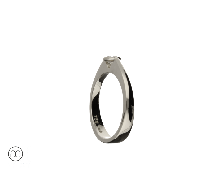 Die klare, feminine Linienführung, feinstes Weißgold in Hochglanzpolitur und ein wunderschöner, hochwertiger Brillant verleihen diesem Ring einen Hauch von schlichter Eleganz und moderner Weiblichkeit.