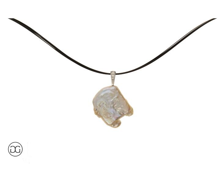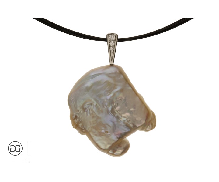 Diese Platinschlaufe mit Brillianten wurde auf Wunsch speziell für eine Kundenperle angefertigt.