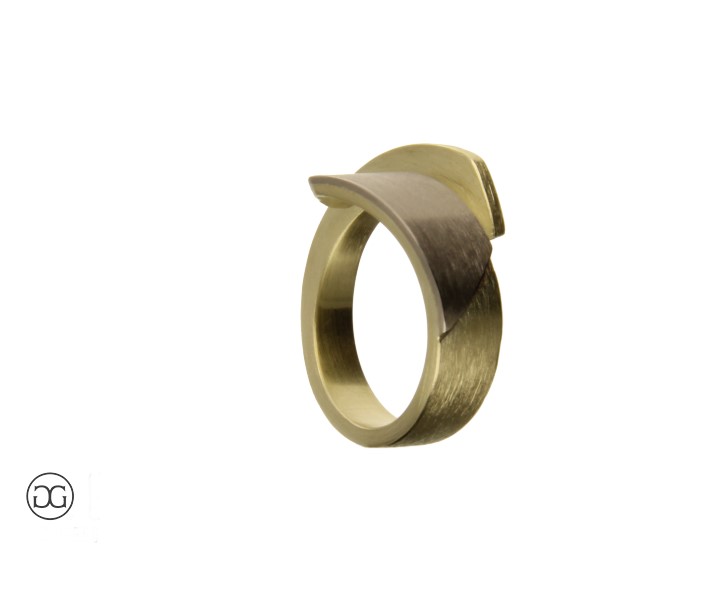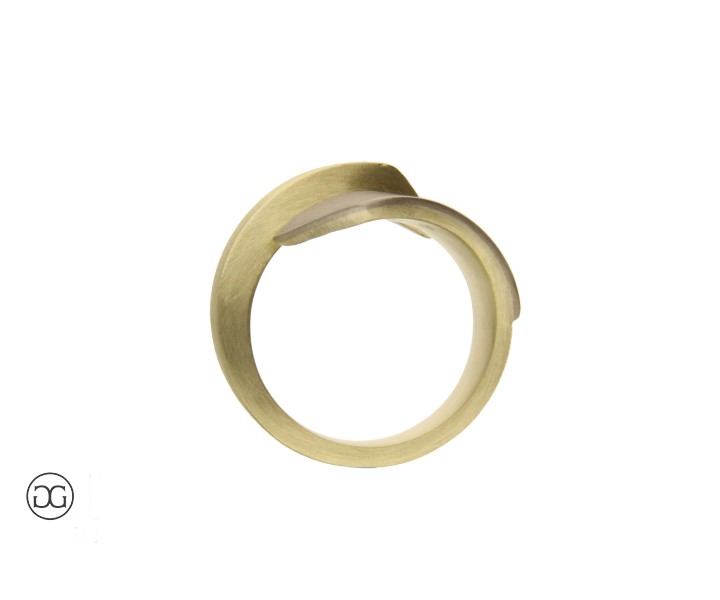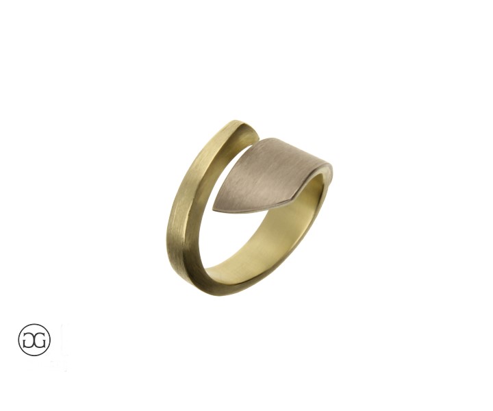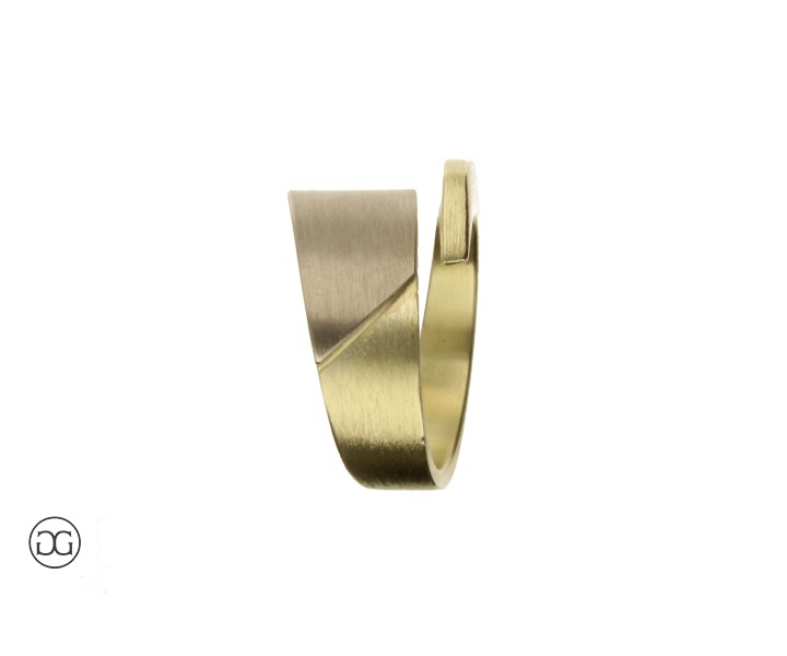 Dieser Damenring vereint Weißgold und Gelbgold in einem raffninierten, architektonischen Design mit seidenmatter Oberfläche. Gerne variieren wir die Proportionen und Farblegierungen individell nach Ihren Wünschen.