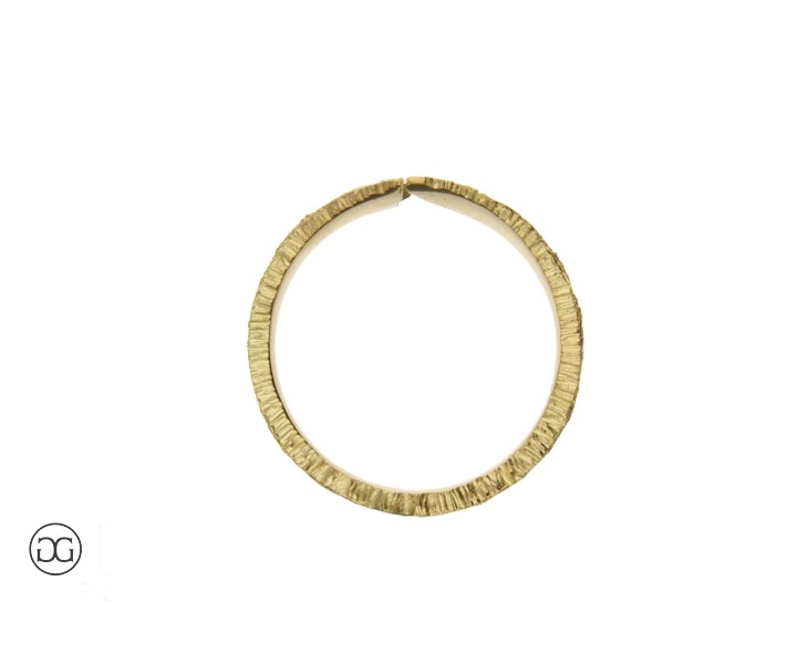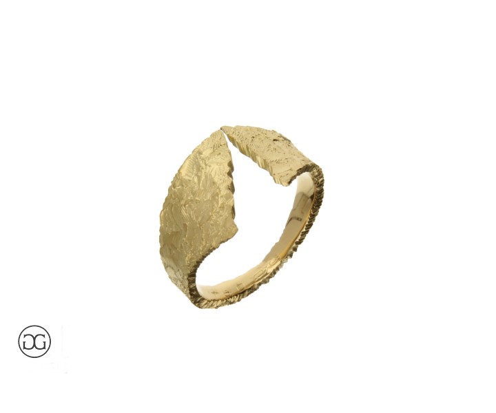 Dieser wertvolle Damenring aus 750 Gelbgold besticht durch seine organische, lebhafte Oberfläche, die durch eine spezielle Spachteltechnik entsteht. Wir fertigen jedes Stück von Hand und können dadurch unterschiedlich stark ausgeprägte Oberflächen anbieten. Natürlich kann auch Ringform, Legierung sowie Steinbesatz an Ihre ganz persönlichen Wünschen angepasst werden. Wir beraten Sie gerne.