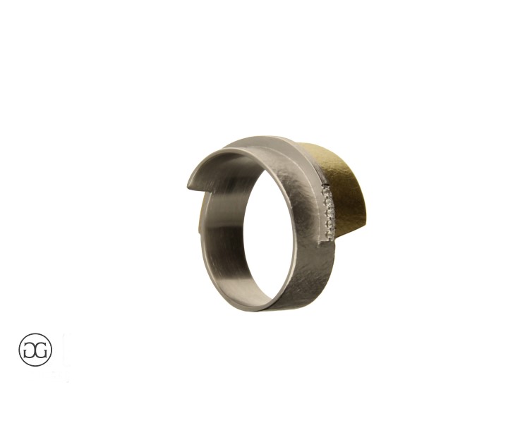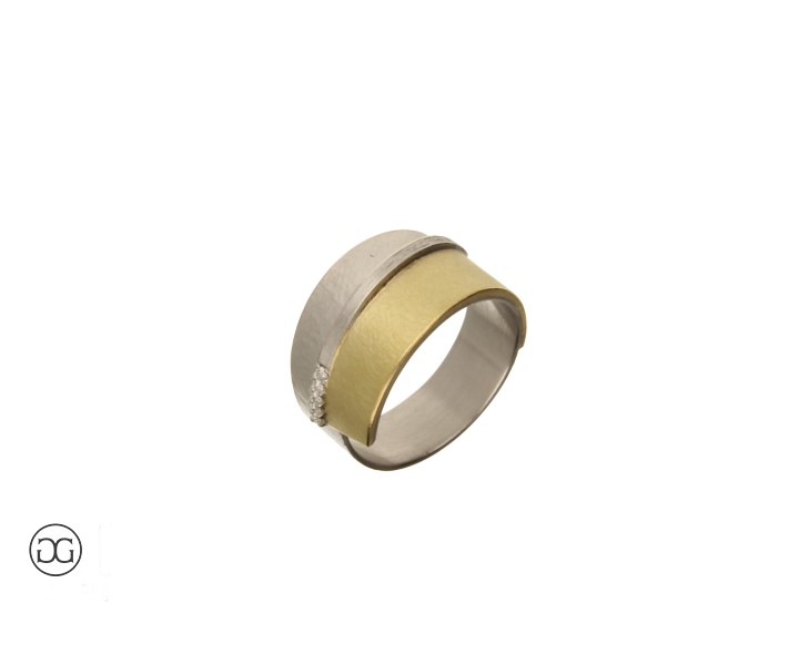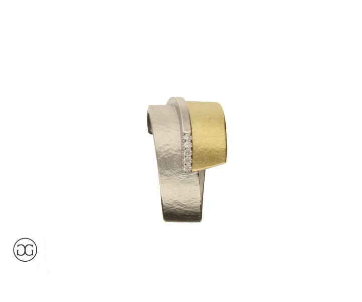 Damenring Bicolor 750 mit Brillianten in moderner architektonischer Form.