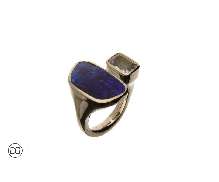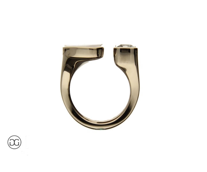 Die Edelsteine wurden vom Kunden angeliefert . Die Aufgabe war hier, zwei unterschiedliche Mineralien in eine harmonische Form zu integrieren.
