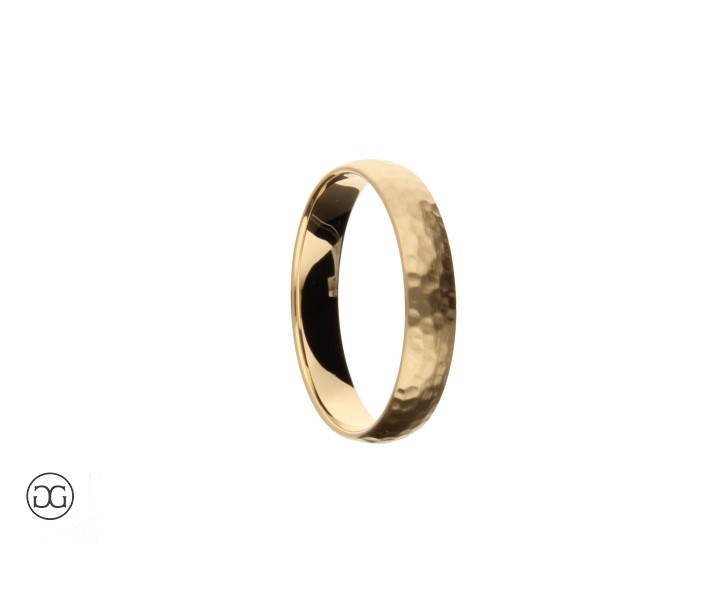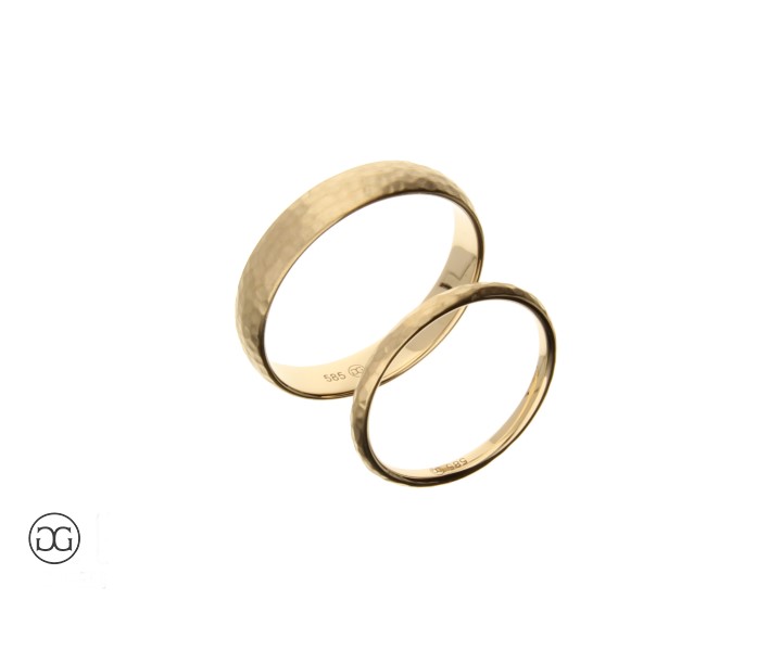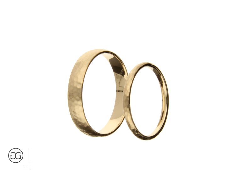 Sportlich schlichte Trauringe in Rosegold mit Hammerschlag. Durch die haltbare Hammerschlag Oberfläche werden auch bei täglichem Tragen wenig Gebrauchsspuren sichtbar.